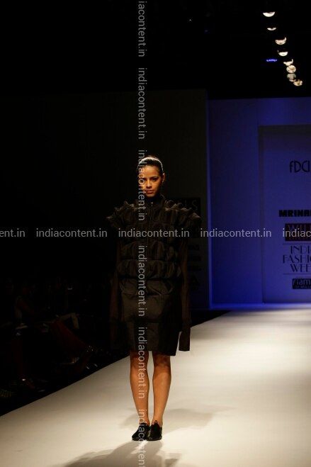 NEW DELHI INDIA APRIL 08 A model walks the ramp during Mrinalinis show at the Wills lifestyle India Fashion Week in New Delhi.Photo by Yasbant Negi India Today Group