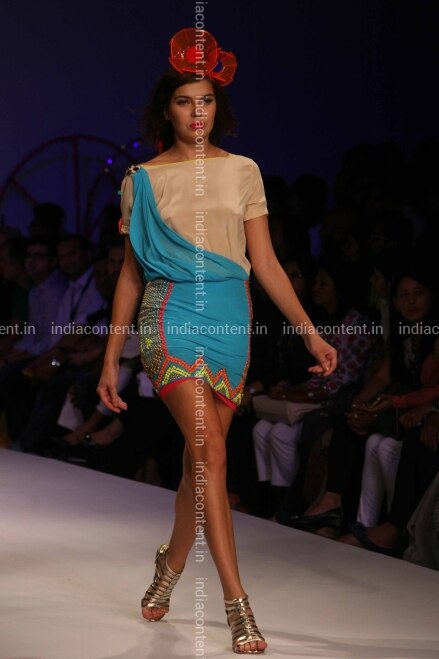 NEW DELHI INDIA - OCTOBER 06 A model walks the ramp for designer Surily Goel during the Wills Lifestyle India Fashion Week WIFW 2012 at Pragati Maidan in Delhi. Photo by Ramesh Sharma India Today Group