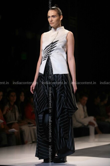 NEW DELHI INDIA - OCTOBER 07 A model displays a creation by Ankur and Priyanka Modi during the Wills Lifestyle India Fashion Week in New Delhi Sunday October 7 2012. Photo by Ramesh Sharma India Today Group