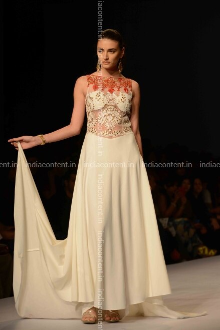 NEW DELHI INDIA OCTOBER 12 A model walks the ramp FOR designer Charu Parashar during the Wills Lifestyle India Fashion WEEK 2013 IN NEW Delhi.Photo BY Ramesh SharmaIndia Today GROUP