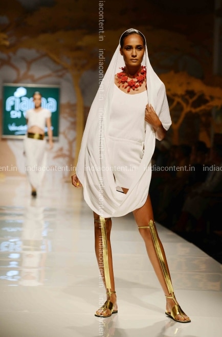 NEW DELHI INDIA OCTOBER 12 A model walks the ramp FOR designer Wendell Rodricks during the Wills Lifestyle India Fashion WEEK 2013 IN NEW Delhi.Photo BY Ramesh SharmaIndia Today GROUP