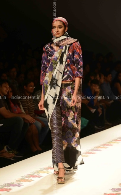 NEW DELHI INDIA OCTOBER 12 A model walks the ramp FOR designer Krishna Mehta during the Wills Lifestyle India Fashion WEEK 2013 IN NEW Delhi.Photo BY Ramesh SharmaIndia Today GROUP