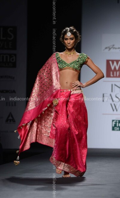 NEW DELHI INDIA MARCH 26 A model walks the ramp FOR designer Anupama Dayal AT the Wills Lifestyle India Fashion WEEK 2014 IN NEW Delhi.Photo BY Praveen Negi India Today GROUP