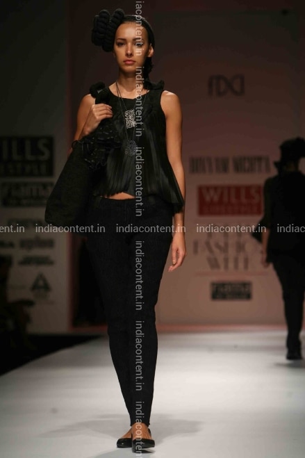 NEW DELHI INDIA - APRIL 08 A model showcases the collection of designer Divyam Mehta during the Wills Lifestyle India Fashion Week FallWinter 2011 in New Delhi India Wednesday April 8 2011. Photo by Ramesh Sharma India Today Group