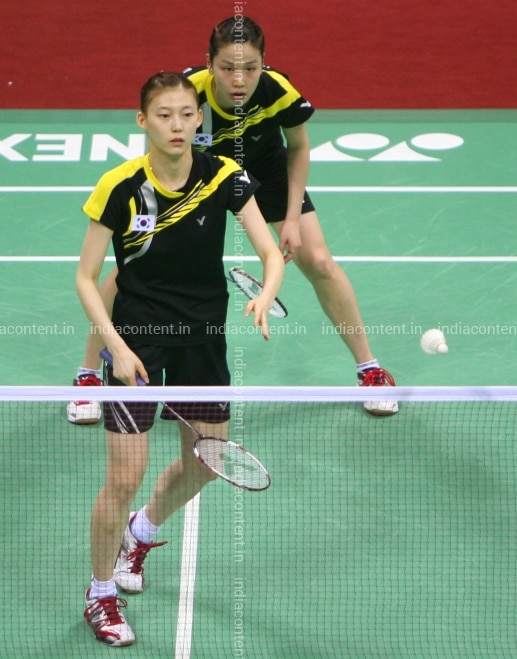NEW DELHI INDIA - APRIL 29 Korea Jung Kyung Eun and Kim Ha Na in action against China Bao Yixin and Zhong Qianxin during their Women doubles final match at Yonex Sunrise India Open 2012 in New Delhi on Sunday. Photo by Qamar Sibtain India Today Group Jung Kyung EunKim Ha Na