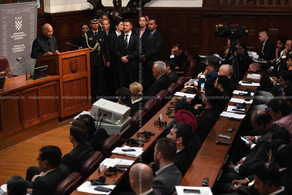 Buy Zagreb President Ram Nath Kovind addresses during Croatia India Economic Forum organised by Croatian Chamber of Economy in Zagreb Croatia in March 27 2019 Photo IANS RB Pictures, Images, Photos By IANS - Others pictures
