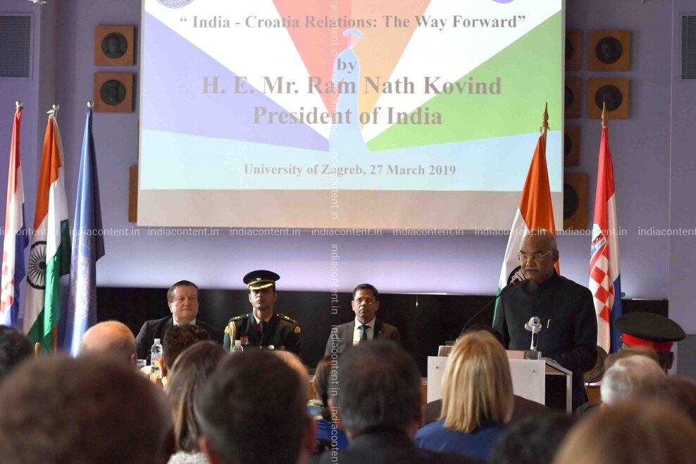 Zagreb President Ram Nath Kovind addresses the students of University of Zagreb in Croatia on March 27 2019. Photo IANS RB